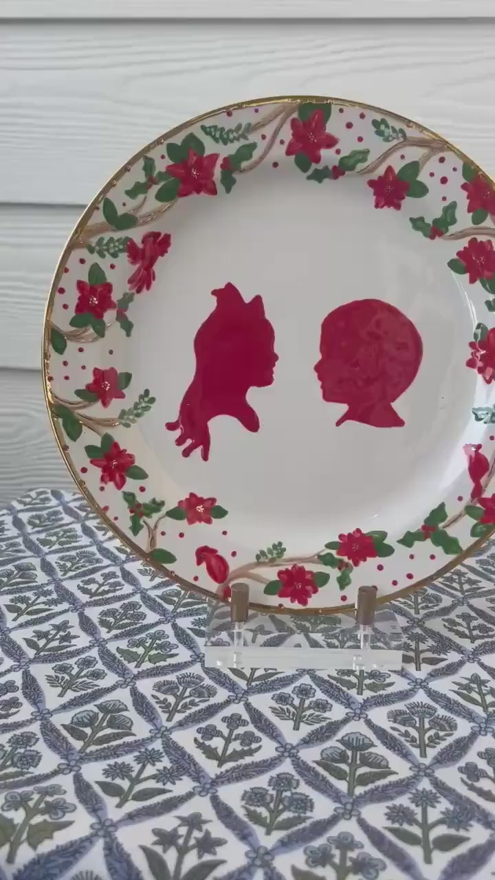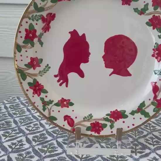 Custom, Hand Painted silhouette plates with our sweet wreath border.Â