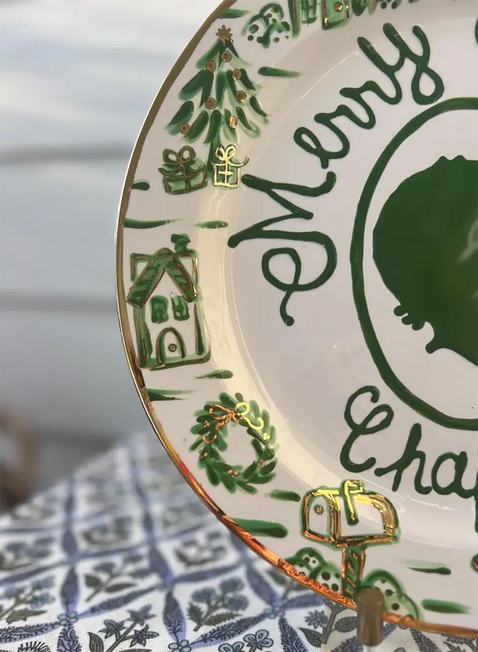 Custom, Hand Painted silhouette plates with our sweet wreath border.Â