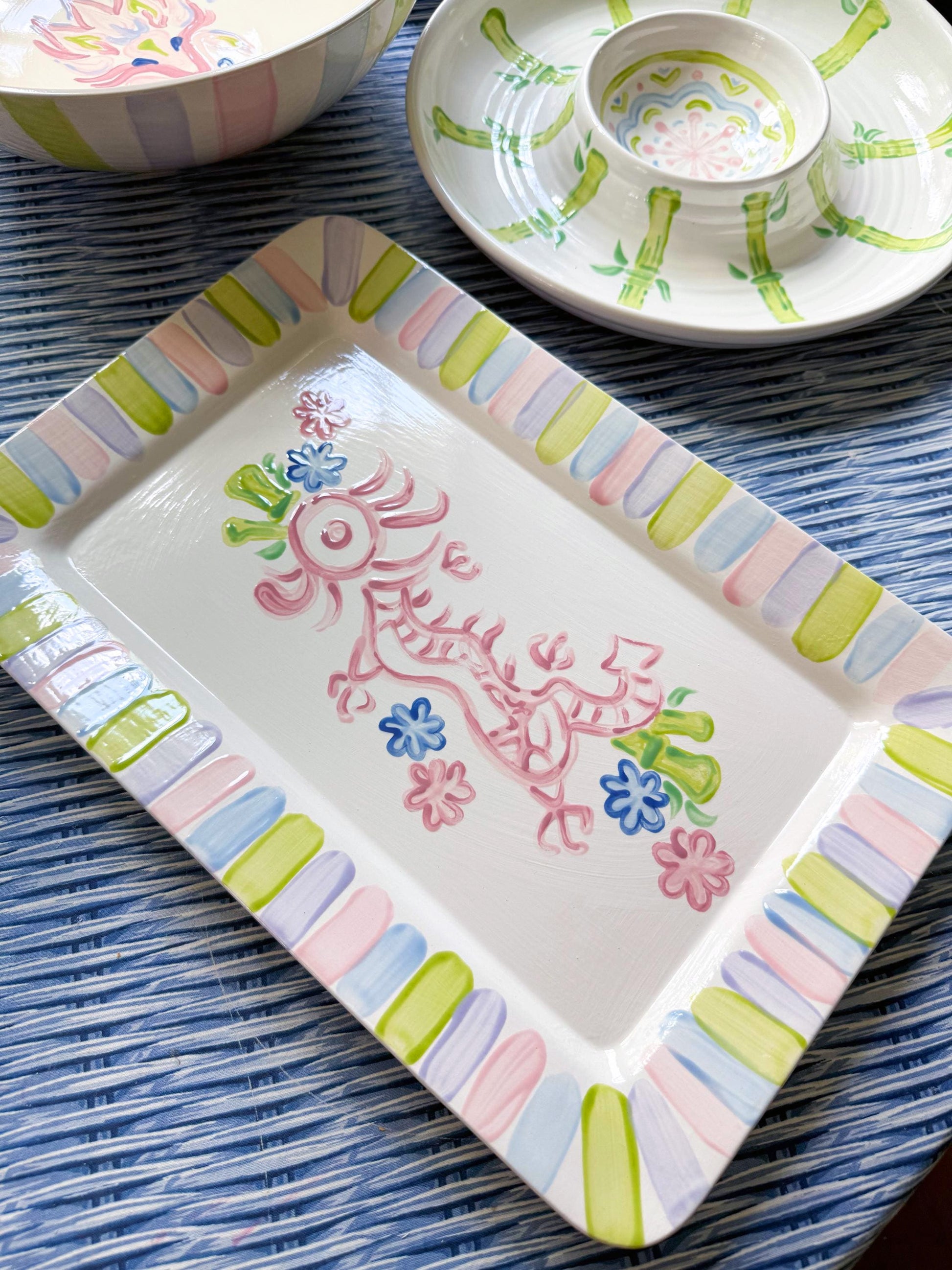 Handpainted Mahjong Serving Platter 15” Rectangle