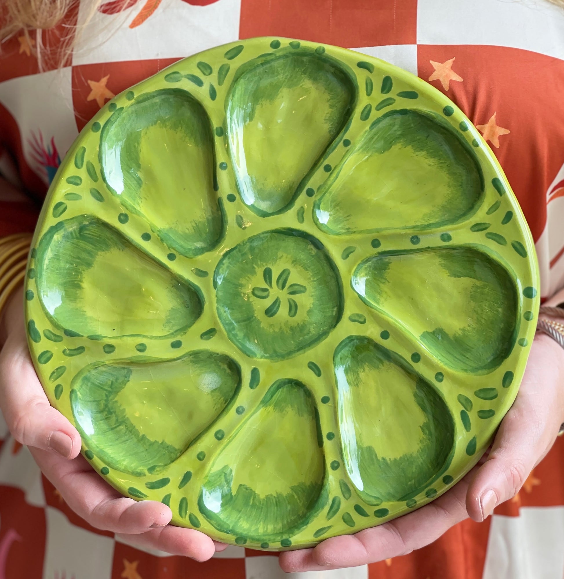 Oyster Plate 5 - Bright Green Tones - Artisan Pottery