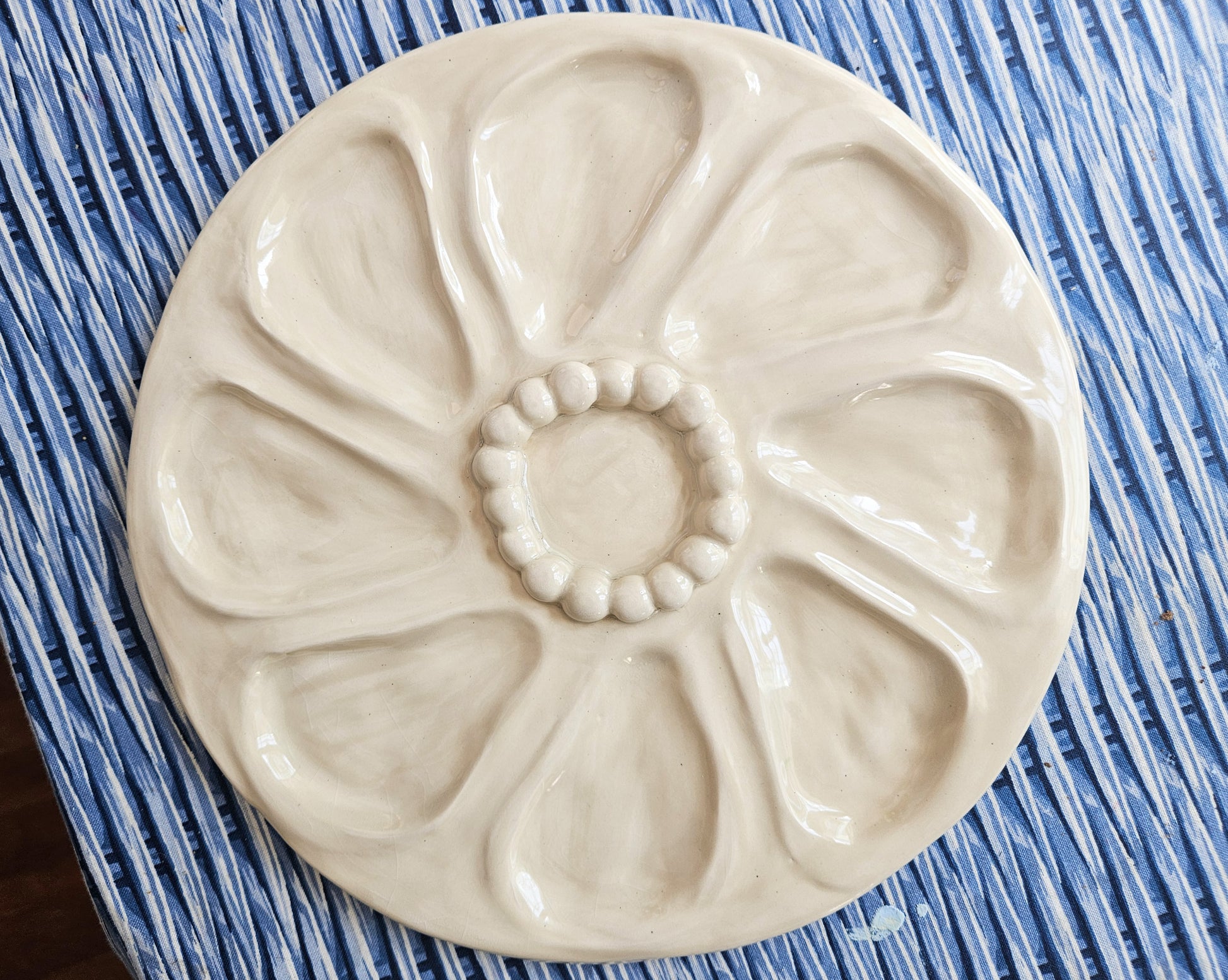 Oyster Plate 11 - White With Beaded Center - Artisan Pottery