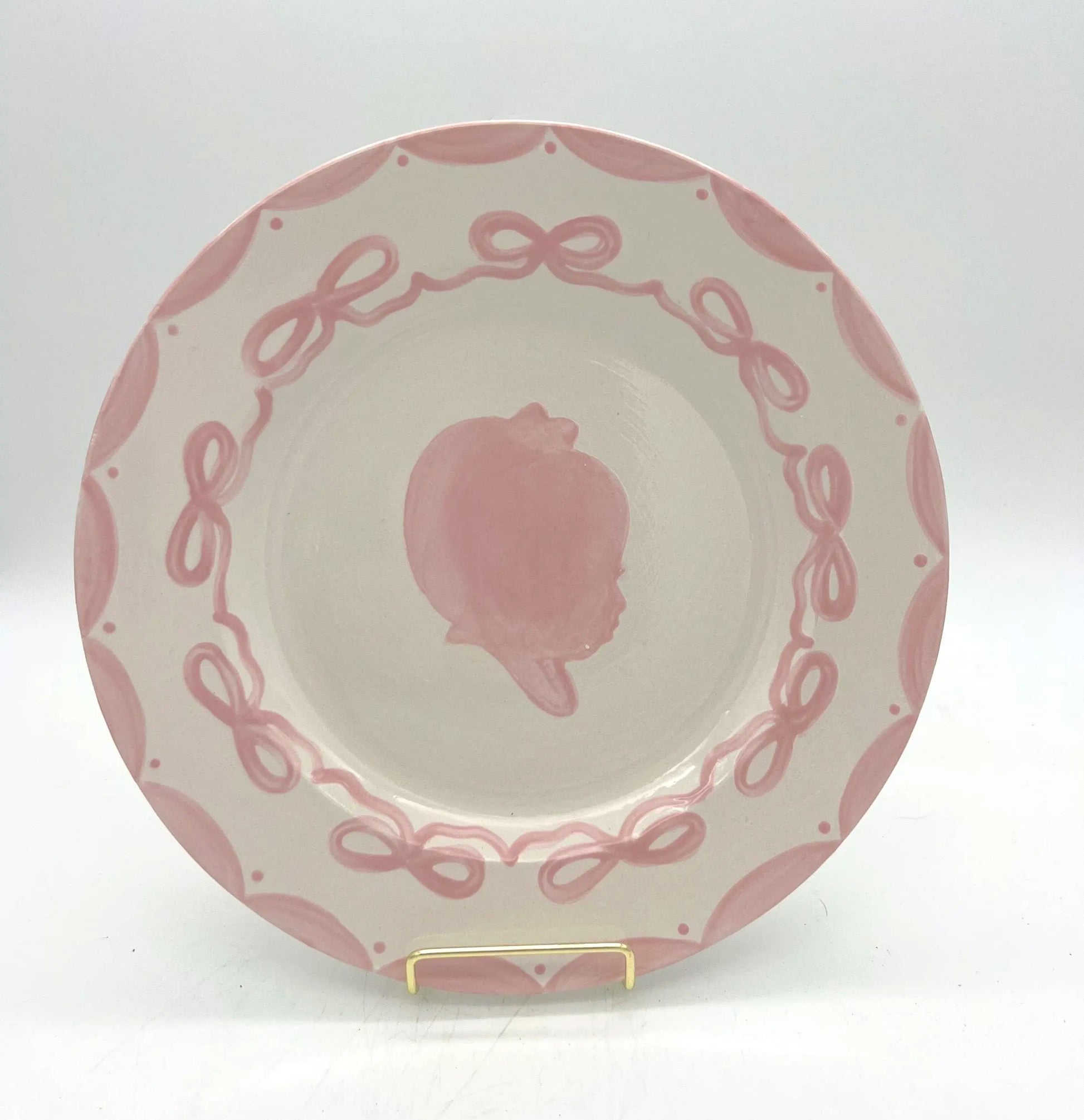 The Original Silhouette Plate - Each plate has a hand drawn silhouette and is hand painted with ceramic glaze. We then kiln fire them for a professional, heirloom quality finish. This listing is for our Ballerina Bows Print trim, available in multiple pastel colors.